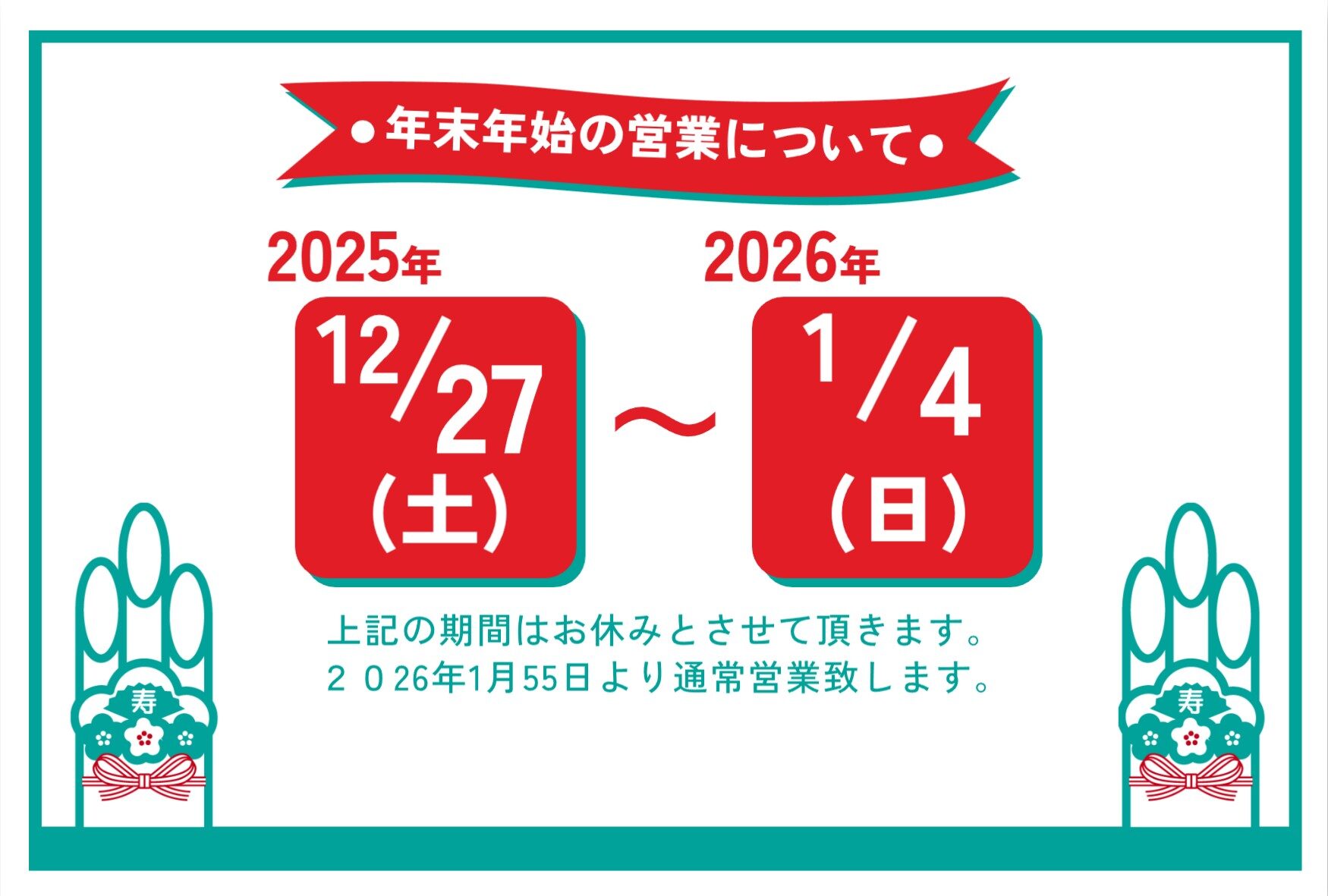 2025年冬季休暇のご案内
